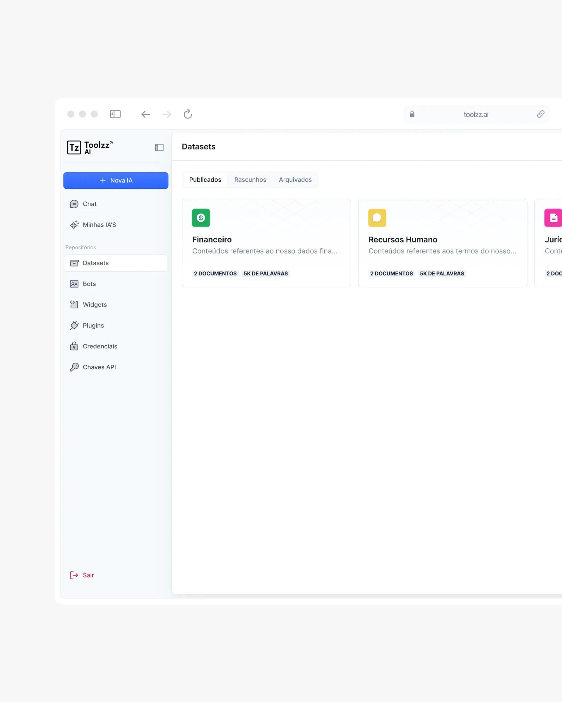 Os Datasets representam bases de conhecimento que a inteligência artificial pode consumir para elaborar respostas.